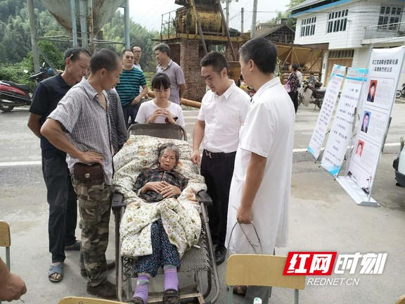 “您老多大年纪了啊,听得清我说话吗?你先不要急,我给您先检查一下。”一位头发花白的老奶奶躺着躺椅上用心听取专家的嘱咐。老奶奶因为腿脚无力原因只能长期卧床,当得知此次有专家团队来村里免费义诊,老人的儿子用当地自创的简易独轮车将老人送到了义诊现场,长沙珂信肿瘤医院内科主任医师向其德为老人检查表示,老人体内有大量腹水,说话有气无力,考虑肝脏方面可能存在问题,建议带上以往的病历资料去医院做进一步检查并治疗。