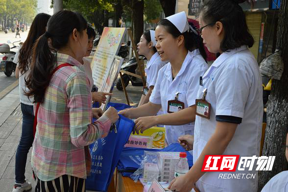 活动当天,接待群众咨询服务1000余人次,发放叶酸450盒、避孕套500盒;发放《出生缺陷防治核心信息20条》《产前筛查宣传资料》《湖南省妇幼重大公共卫生服务项目》《孕产妇日常保健知识手册》《健康教育宣传资料》《0-6儿童日常保健》《预防接种知识问答》等读本(折页)6000余本(份);发放印有“合理膳食·适量运动·戒烟限酒·心理平衡及家庭医生进万家·签约服务你我他”的蓝色环保手提袋1000个。