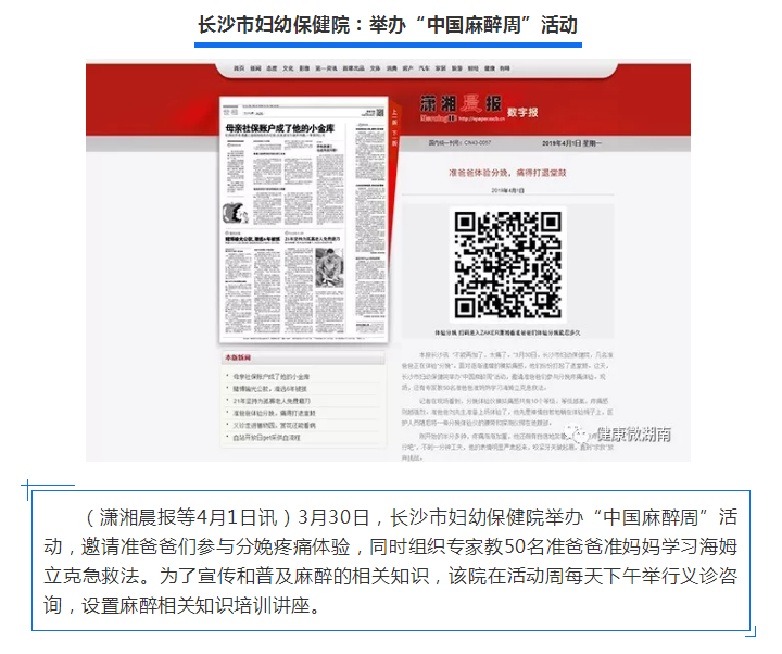 湖南卫生健康新闻周报——(2019年第14周总178期)