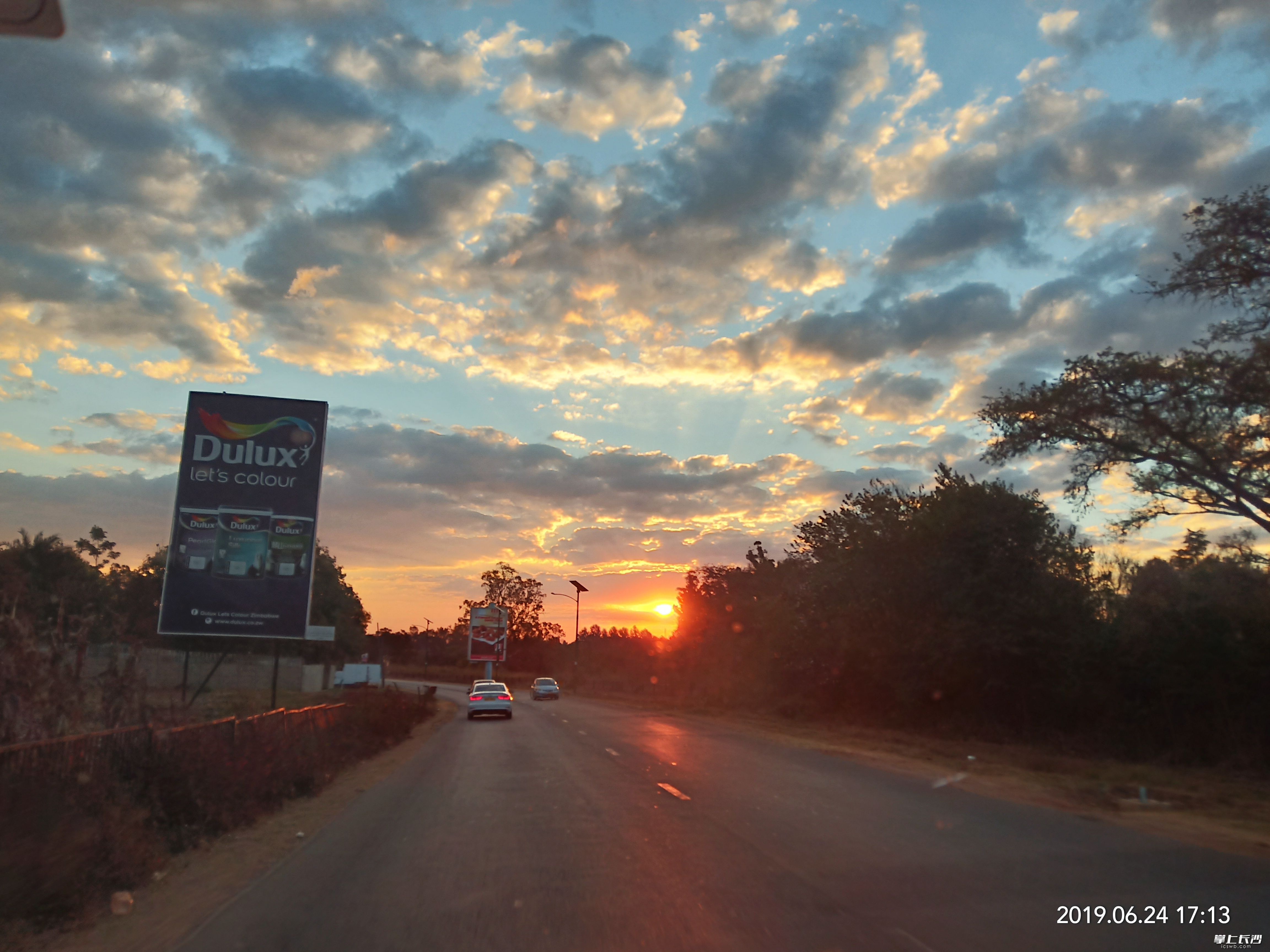 这里,每天下午在5~6时开始夜幕降临,但晚霞充满魅力。稍微空旷的马路或楼顶,你只要有时间驻足,哈拉雷的晚霞可以让你流连忘返。与门卫聊天时谈到晚霞,他说,你在城市看到的晚霞不是最美的,离市区40分钟路程的一个景点,那里的晚霞犹如饕餮大餐,美不胜收。