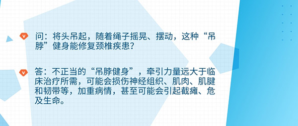 有流言称,将头吊起,随着绳子摇晃、摆动,这种“吊脖”健身能修复颈椎疾患。