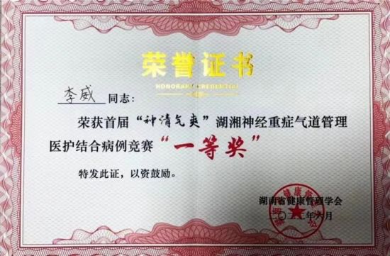 神经外科主治医师李威、主管护师李兰以“一例急性硬膜外血肿患者的气道护理”为主题,进行案例汇报。充分的准备、流畅的表达、良好的台风,赢得评委及与会人员的一致赞扬,充分展示了长沙市第一医院神经外科对神经重症患者的救治能力和精细化护理水平。