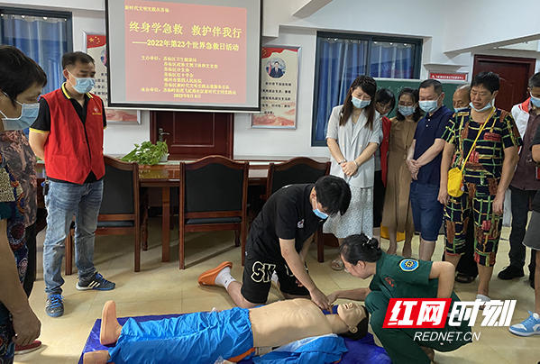 红网时刻新闻9月7日讯(通讯员 何军)2022年9月10日是第23个世界急救日,为进一步宣传和推广自救互救知识,树立“人人学急救、急救为人人”的理念,提升群众应对突发事件和意外伤害的自救与互救能力,9月6日,郴州市苏仙区卫生健康局、苏仙区政协文教卫体和文史委、苏仙区计生协、苏仙区红十字会、郴州市第四人民医院在飞虹路社区联合开展了以“终身学急救,救护伴我行”为主题的世界急救日宣传活动。