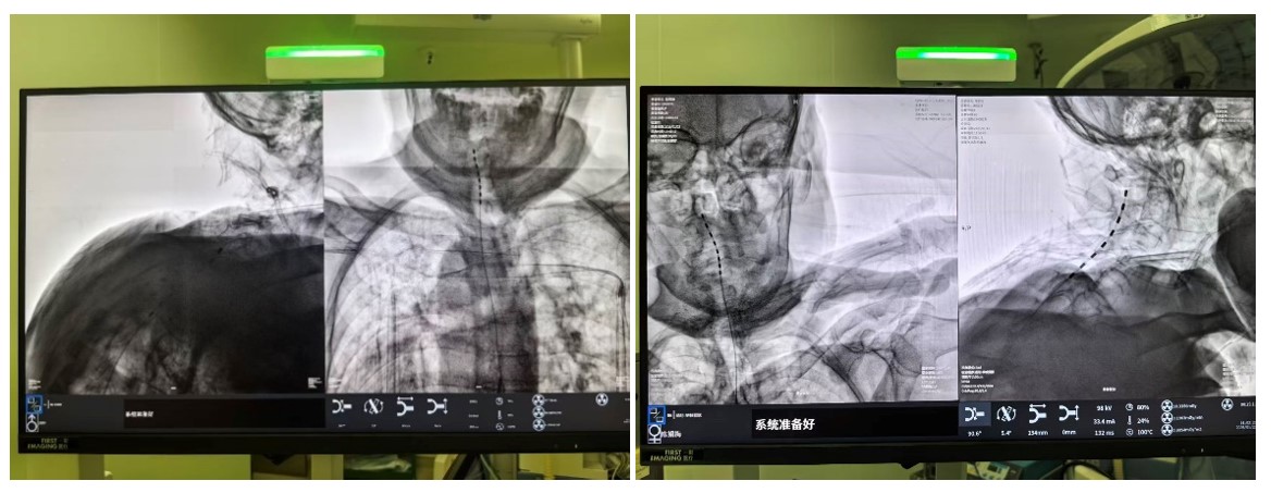 面对高龄且身体机能脆弱的患者,中南大学湘雅三医院疼痛科胡蓉教授团队经过严密评估,最终于1月中旬为两位老人实施了“局麻下C臂引导下脊髓电刺激术(SCS)植入术”。这项被称为神经调控领域“减痛黑科技”的技术,其原理在于:将微细电极植入脊髓硬膜外腔,通过发出微弱电脉冲,在疼痛信号传向大脑的路径上进行“精准拦截”,从而阻断痛感。