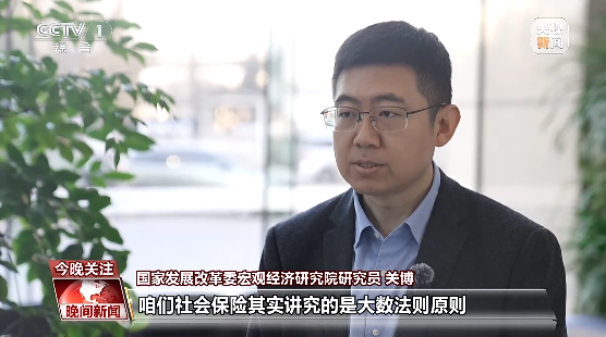 国家发展改革委宏观经济研究院研究员 关博:咱们社会保险讲究大数法则,参保对象越广泛,参保人员越多,基金抗风险能力会更强。