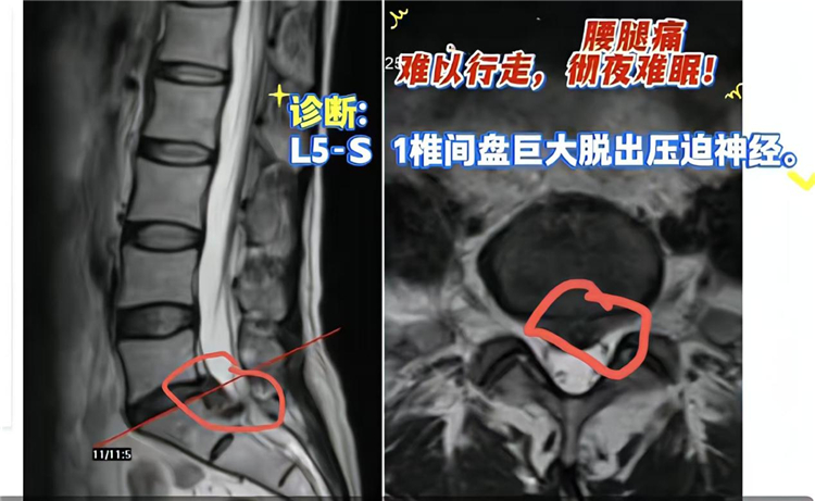 47岁的王女士(化名)4个多月前出现下腰部及右下肢顽固性疼痛,近期症状有所加重,夜间疼痛影响睡眠,行走时疼痛明显,自述影响生活质量。为求进一步诊治,她来到该院脊柱外科就诊。经磁共振成像(MRI)检查,王女士被诊断为腰5/骶1椎间盘变性并巨大脱出,继发椎管狭窄、骨质增生。
