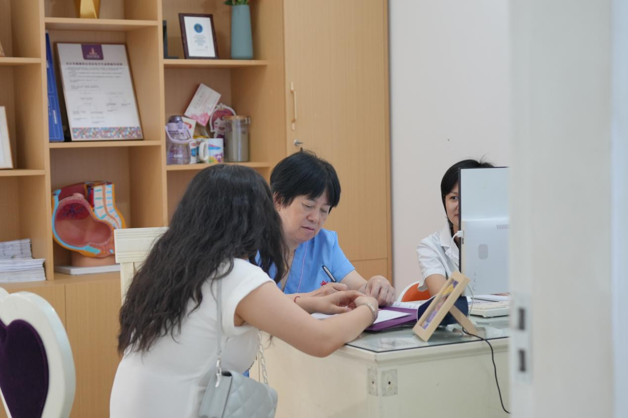 长沙百佳玛丽亚妇产医院产科肖中苏医生正在为孕妈进行看诊。
