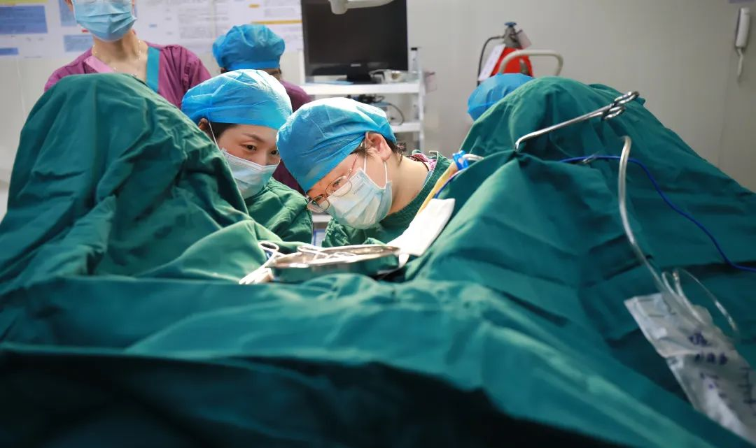 长沙百佳玛丽亚妇产医院妇科团队为患者手术中。