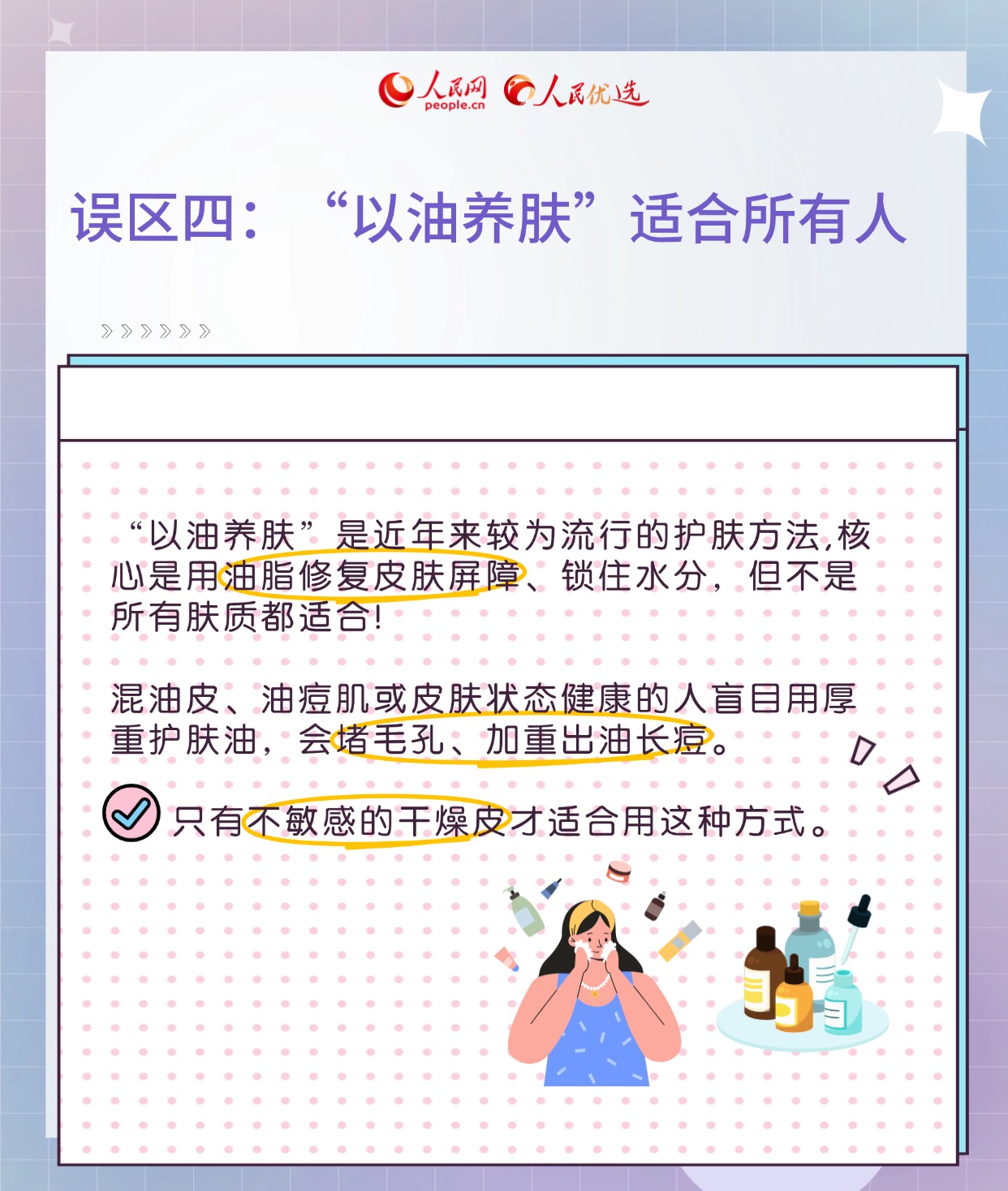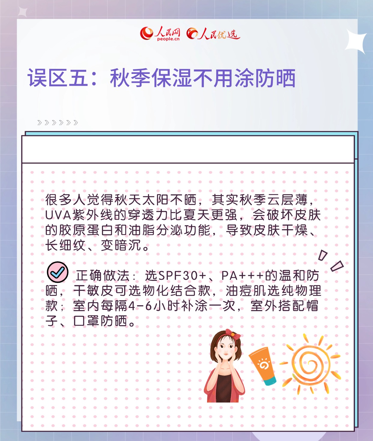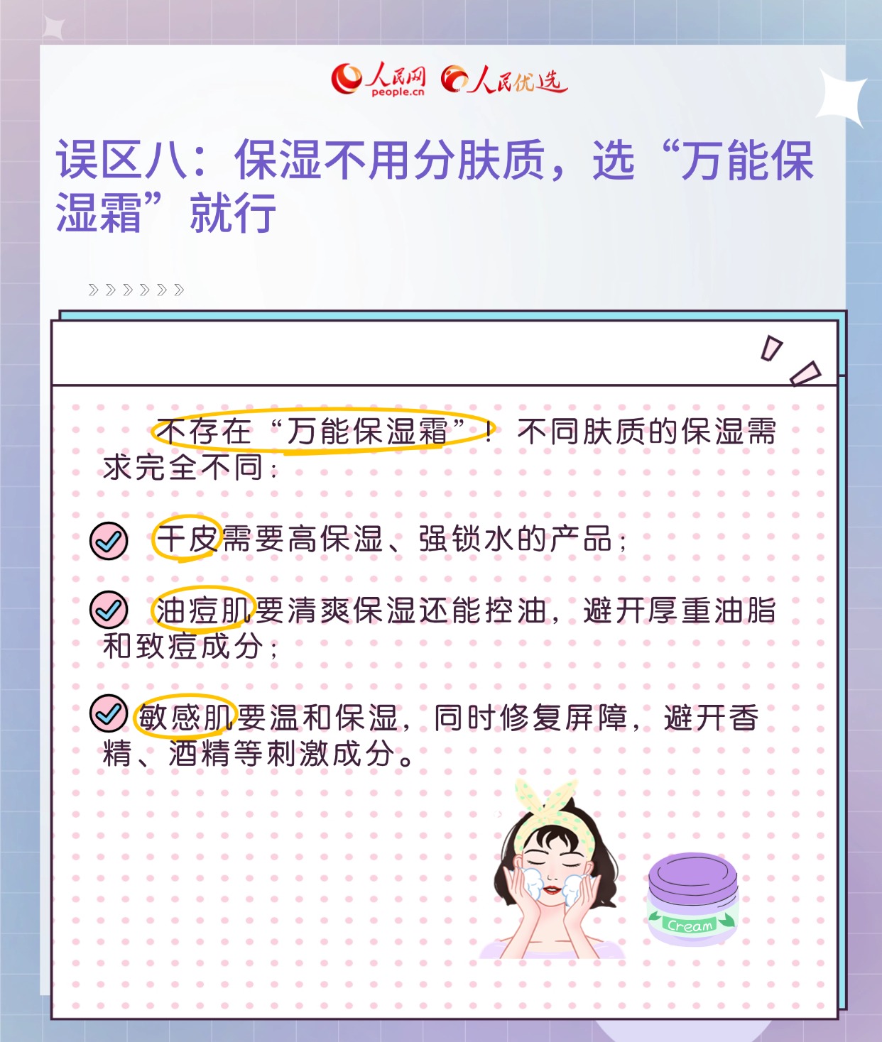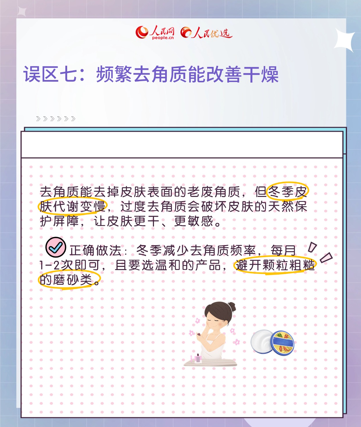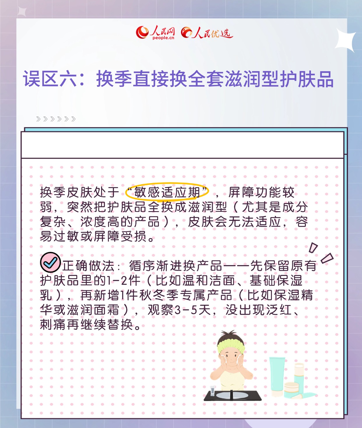时刻新闻 —分享— 冬季皮肤干燥、紧绷甚至脱屑皲裂,其实是气温下降、空气湿度变低导致皮肤水分快速蒸发的正常现象。很多人急于补水保湿,却因方法不当效果不佳。本期《人民优选来了》,为你梳理下面8个秋冬护肤常见误区,快看看你有没有中招! 来源:人民网 编辑:戴丹