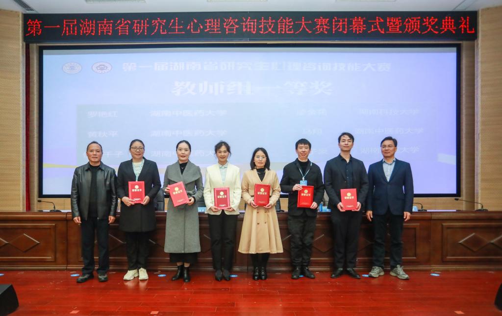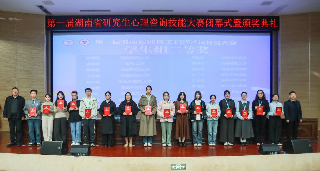 赛事历时4个月,覆盖湖南省所有心理学、应用心理学、心理健康教育、精神病与精神卫生学、护理学、社会工作研究生培养单位。经过激烈角逐,最终共评出教师组一等奖6名、二等奖9名、三等奖5名;学生组一等奖11名、二等奖16名、三等奖9名。湖南师范大学、湖南科技大学荣获优秀组织奖。
