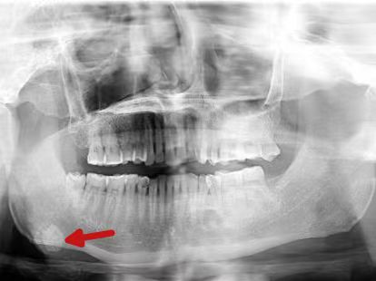 3.吞咽困难:结石堵塞,有时在下巴内侧(舌下)能摸到硬硬的小疙瘩。若结石堵塞引发腺体感染,还会导致口底反复肿胀、疼痛,甚至扩散到颌下区,引起吞咽困难、异物感。