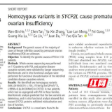 本研究通过对110个早发性卵巢功能不全家系进行全外显子测序检测,在2个POI患者中发现2个SYCP2L基因的变异(c.150_151del; c.999A>G),通过细胞水平的功能研究,证实了该2变异的致病性,并最终鉴定SYCP2L是POI的新致病基因。SYCP2L是着丝粒蛋白,在卵母细胞减数分裂前期高表达,可能参与减数分裂联会复合体的形成。该蛋白的异常会引起卵子发生受阻,导致POI的发生及女性不孕。